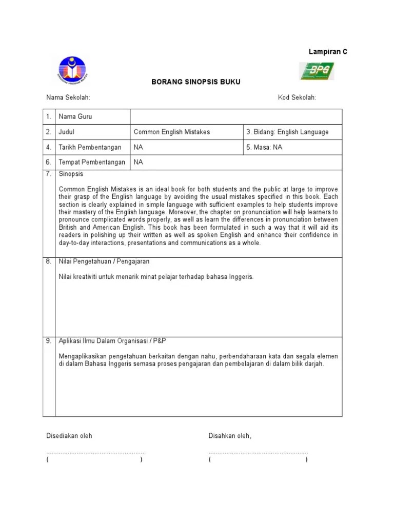 Borang sinopsis buku ladap splkpm. Lampiran c borang sinopsis buku nama sekolah: Ulasan buku ladap pengetahuan profesional guru (book review on fire safety).